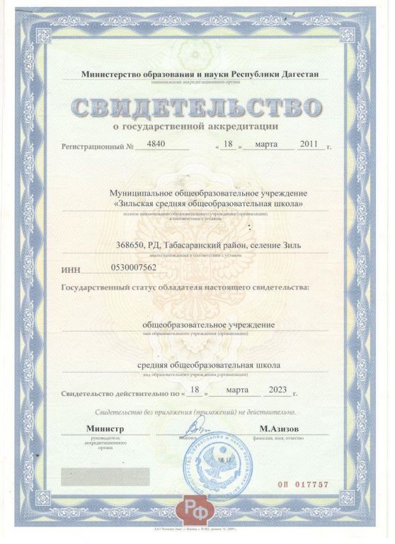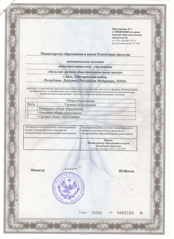 Адрес местонахождения образовательной организации* 368666 Республика Дагестан, Табасаранский район, с.Зиль , ул Центральная 8